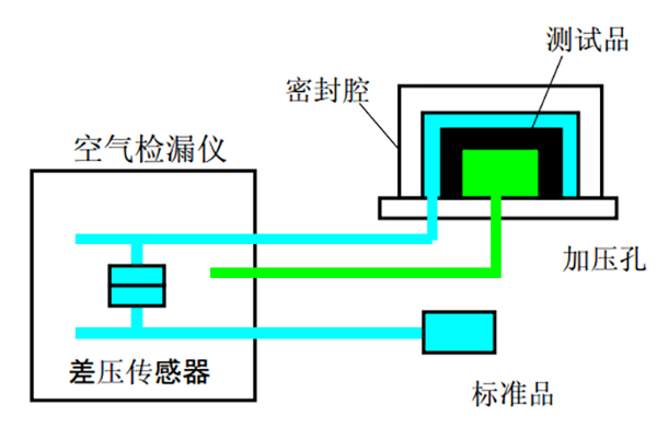 防水測試儀可以勝任對于各個部件的檢測,但是防水檢測儀必須配合工裝夾具進行使用。所謂的夾具就是根據(jù)所檢測零部件的形狀特點特定而成,其主要作用是密封及固定。將檢測部件放入工裝夾具中,形成一個密閉腔,也就是所謂檢測端;防水測試會自帶一個標準腔,叫做標準端;儀器進行檢測時,差壓傳感器根據(jù)檢測端和標準端的差壓值來判斷泄漏量。