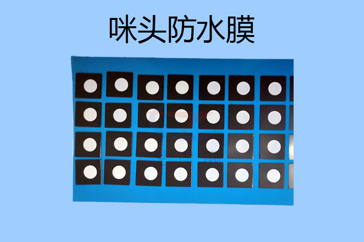 電子產品咪頭防水膜材料以氟化物(聚四氟乙烯)為主,電子產品咪頭MIC防水膜產品成品是以經過模切機模切而成的,是將咪頭防水膜原材料與背膠貼合后經刀模沖裁出來的,而后在進行排廢處理后就得到了咪頭防水膜產品;再去檢測挑去不合格的,而后就可以包裝交付客戶使用。電子產品咪頭防水膜原材料有很多的微孔,材料的防水與透氣性能使得使油和水滴不易粘附于產品表面,包裝內外正常的氣壓平衡。
